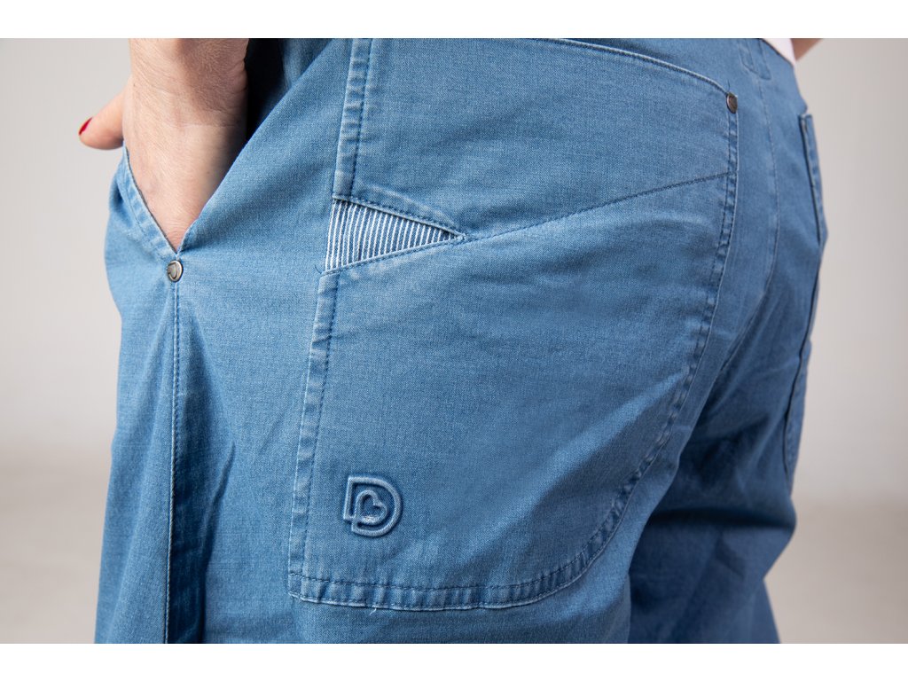 Na zadních kapsách najdeš originální designové detaily: jemnou vsadku se vzorováním a prostřihem spolu s decentním logem DeLove. Tyto prvky dodávají kalhotám osobitý vzhled a posouvají je do prémiové roviny.