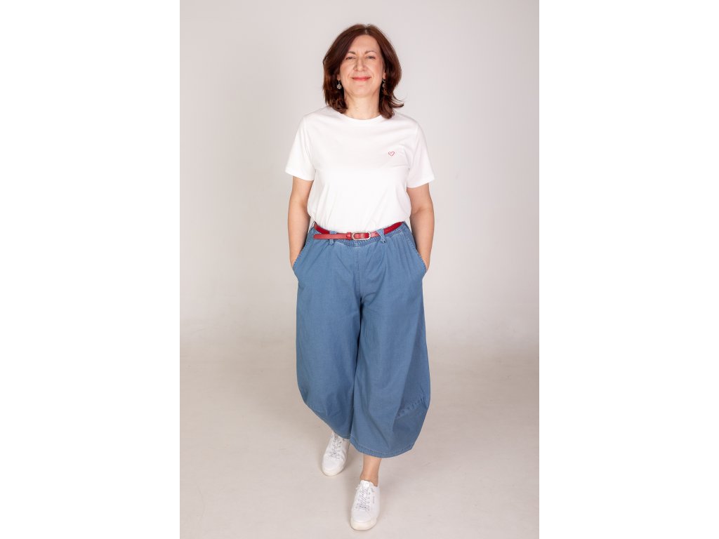 EVITA džínové kalhoty z kolekce DeLove jsou navržené pro maximální pohodlí, volnost pohybu a moderní boho vzhled inspirovaný japonským stylem kalhot. Široká, jemně tvarovaná nohavice vytváří nadčasový siluetový efekt, který lichotí různým typům postav.