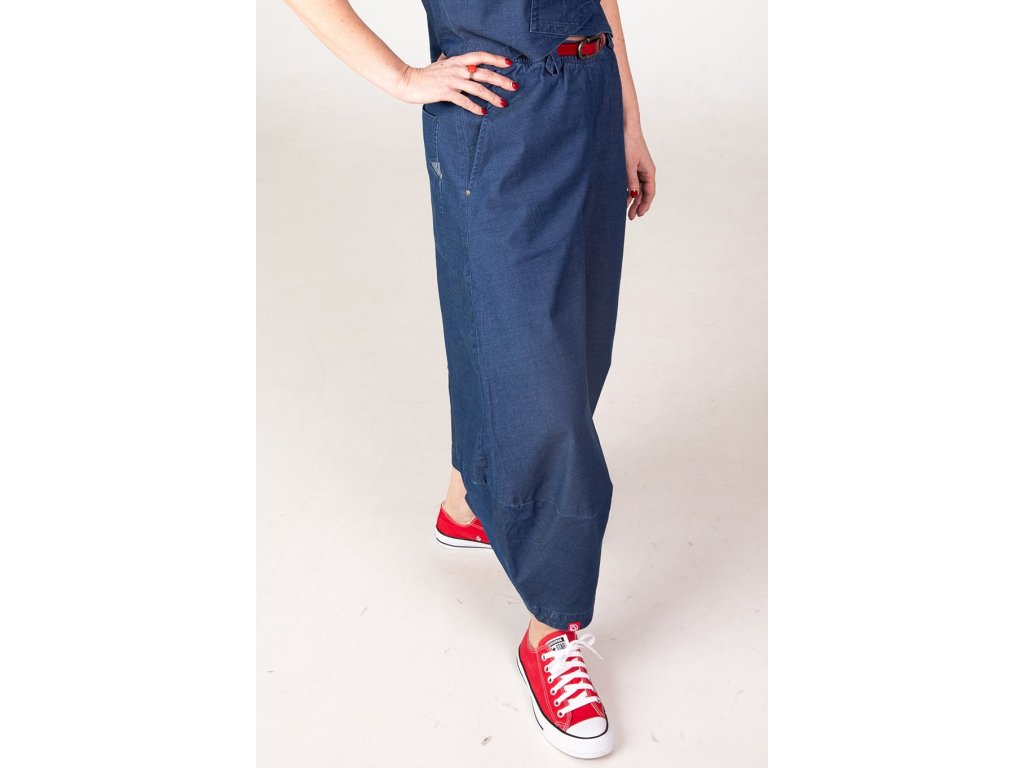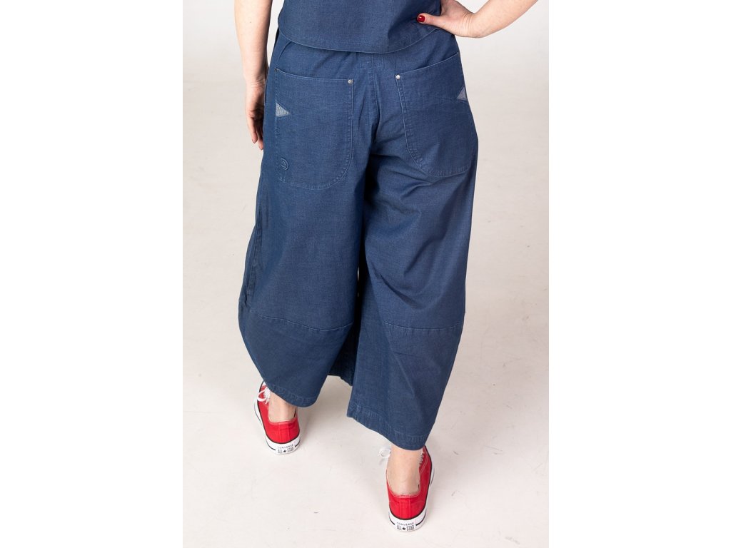 EVITA džínové kalhoty z kolekce DeLove jsou navržené pro maximální pohodlí, volnost pohybu a moderní boho vzhled inspirovaný japonským stylem kalhot. Široká, jemně tvarovaná nohavice vytváří nadčasový siluetový efekt, který lichotí různým typům postav.