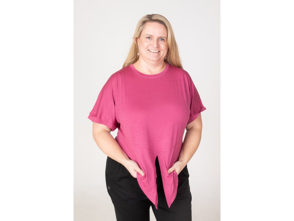 - top v růžové barvě – modelky mají na sobě velikost S a L