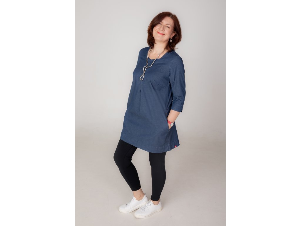 Džínová tunika SUNNY je navržená pro každodenní pohodlí a maximální volnost. Její volný A‑line střih krásně splývá, neobtahuje a umí pracovat s různými typy postav – od štíhlých až po plnější ženské tvary. Díky svému střihu je tunika vhodná i pro těhotné ženy, které ocení volný prostor v oblasti pasu, ale také pro zralé dámy, kterým poskytne pocit pohodlí a elegance.